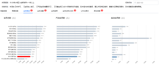 (4) 营销诊断:把同一类型的油站的各项指标进行对标,每个油站既可以看到自己油站情况,也可以看到同组其他油站的情况,还可以知道自己在本组内哪些指标好、哪些指标比较差,经营差异一目了然;对于低于阈值的异常指标,系统会做出预警标注。